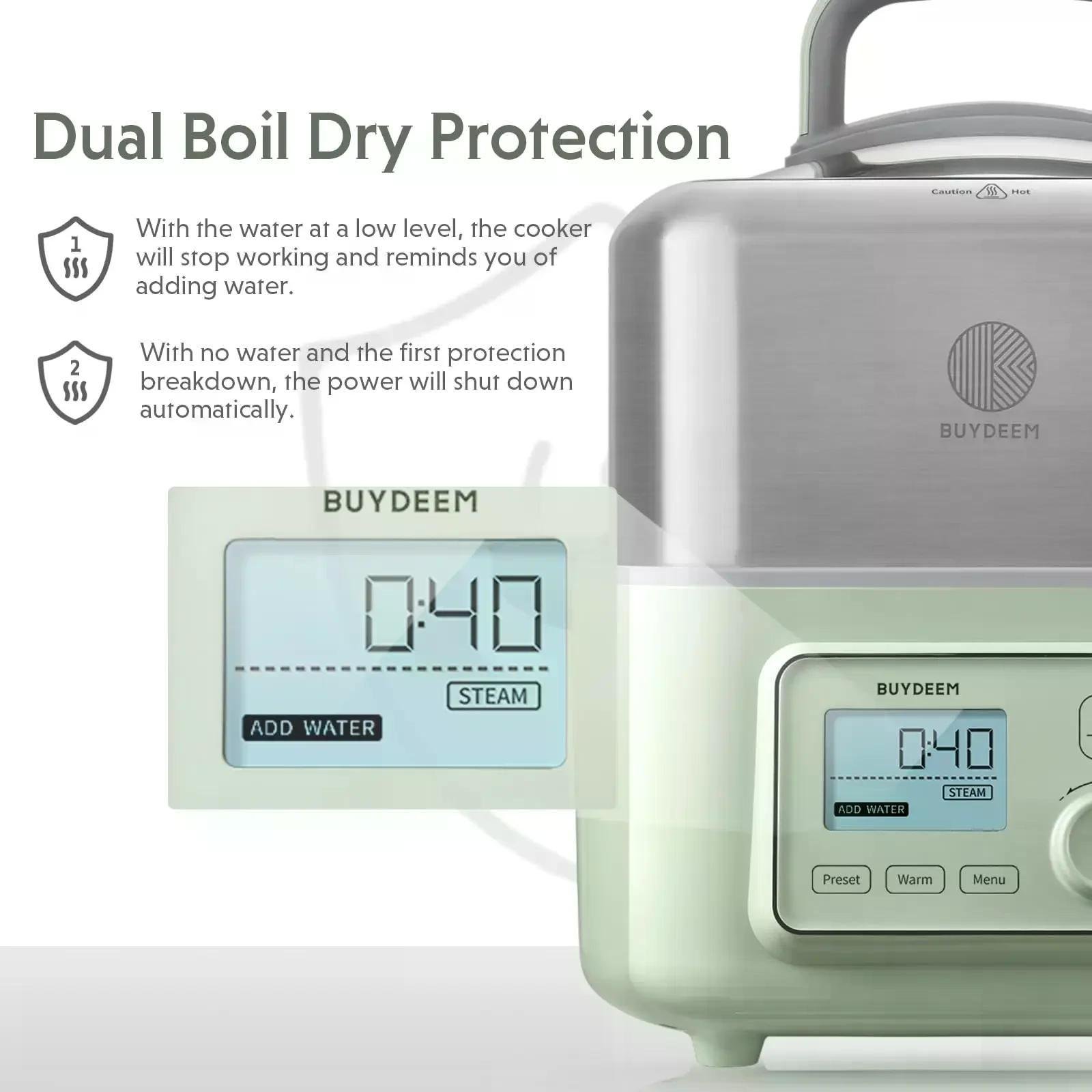 • Auto Power-Off Protection - It has dual protection functions. When the water level is low, the cooker will automatically suspend running and prompt you to add water. When there is no water, the power shut down automatically.