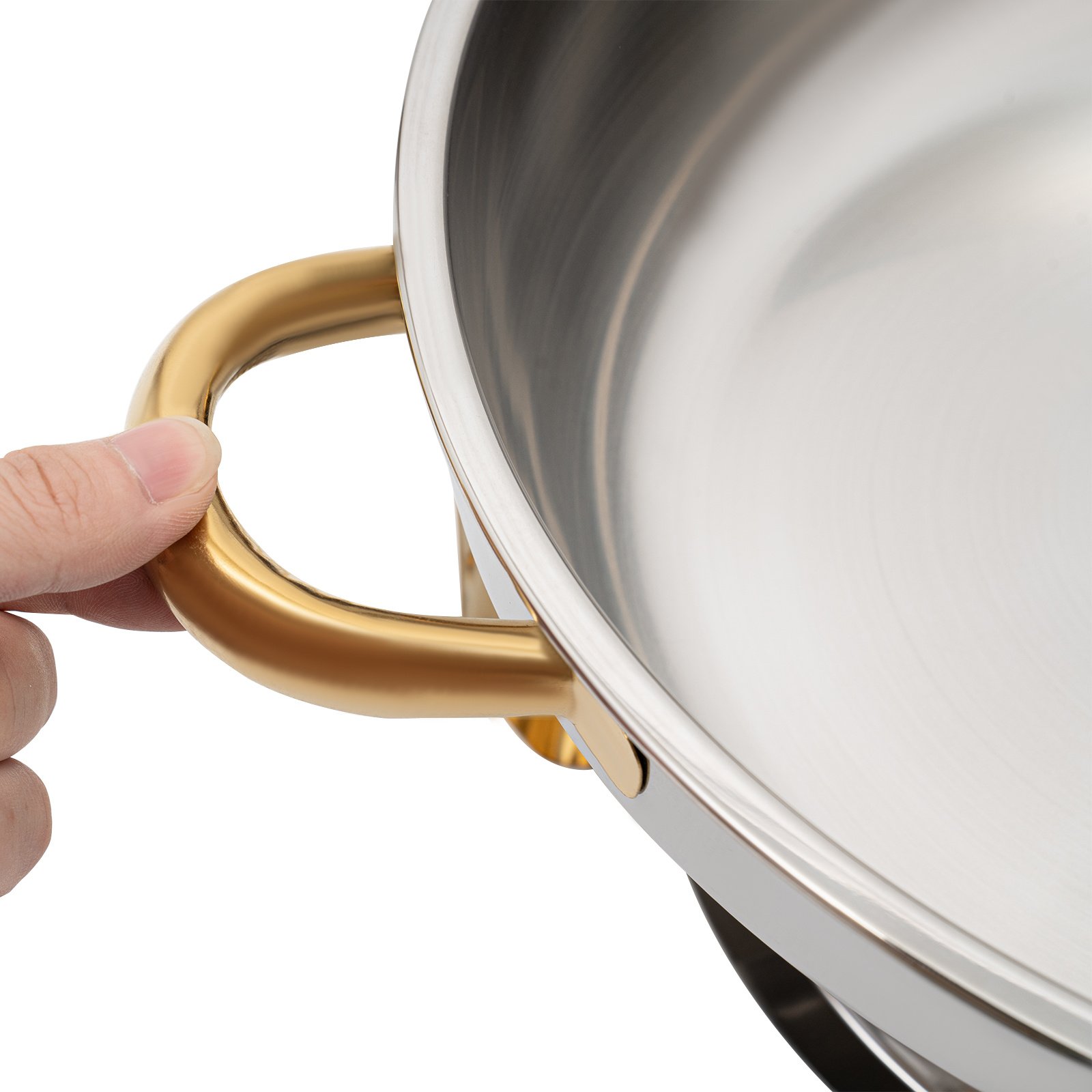 Warm food is not only good for your health but also brings a good mood. This chafing dish buffet set is made of high-quality stainless steel for safety and durability. The large capacity food tray can meet your daily needs. It distributes heat evenly and consistently, keeping cooked food warm for a long time and making it look fresh and tasty. A variety of fine craftsmanship makes it sturdy and durable, and the excellent surface gloss can make food look more fresh and tasty, increasing your appetite.